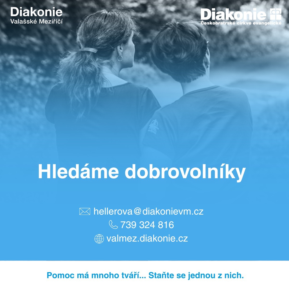 Diakonie Valašské Meziříčí se dobrovolnictví věnuje v rámci akreditovaného programu a aktuální poptávky můžete najít na jejich webových stránkách.